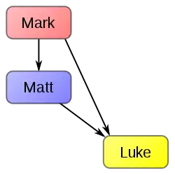 - El tercero es que Lucas sigue el orden de Marcos, pero no hace lo mismo con Mateo. Farrer pregunta, en respuesta: «¿Es sorprendente que pusiese su plan sobre cimientos de Marcos, y los materiales de una cantera de San Mateo para construir su casa?».