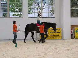 - Hipoterapia activa: al paso, se realizan ejercicios neuromusculares para estimular el tono muscular, la coordinación, el control postural y el equilibrio.[2][3]