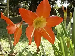 Es un planta bulbosa nativa del Perú; su flor es muy parecida a la de Hippeastrum puniceum, de color rojo naranja, con hojas de 60 -80 cm de largo, 20 cm más largas que las de H. puniceum y el escapo floral igualmente más largo que el de H. puniceum, aprox. 20 cm, la flor tiene una raya de color blanco en los pétalos 2 y 5, contados en sentido horario, siendo el número uno el pétalo más inferior, característica que lo diferencia de H. puniceum, es auto estéril, estigma capitado, crece bien en clima cálido tropical con temperatura diurna de 30 a 36 °C y temperatura nocturna de 28- 32 °C, precipitación anual de 3000 mm. (120 pulg) o 30 litros por metro cuadrado. Es considerado como una planta vulnerable de extinción según la UICN (Unión Internacional para la conservación de la naturaleza) en 1997 por destrucción de su hábitat natural. Los especímenes existentes están en su mayoría en manos de cultivadores particulares