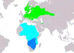 ![]() Distribución de Hippolais icterina Área de cría. Área de migración. Área de invernada. | ||