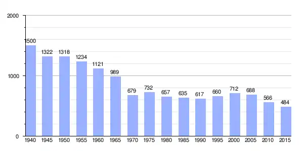 Gráfica de evolución demográfica de Hiraya entre 1940 y 2015 |