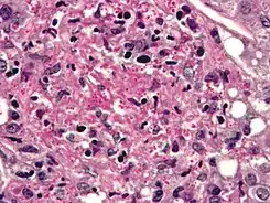 Histoplasma es el nombre del género de hongos imperfectos y dimórficos que habitan en los tractos intestinales —y, por ende, son excretados en las heces— de pájaros y murciélagos.[3] El género cuenta con dos especies: H. capsulatum,[4] el agente causal de la histoplasmosis y de la linfangitis epizootica en caballos (esta última antiguamente atribuida a H. capsulatum var. farciminosum o H. farciminosum, hoy clasificados como sinónimos de H. capsulatum)[5][6] e H. duboisii[7] (causante de la histoplasmosis africana)[8]