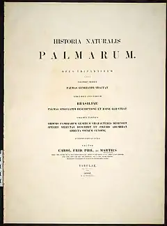 Historia Naturalis Palmarum, (abreviado Hist. Nat. Palm.),[1] es un libro con ilustraciones y descripciones botánicas que fue editado por el médico, naturalista, botánico, antropólogo y uno de los más importantes investigadores alemanes, Carl Friedrich Philipp von Martius. Se publicó en tres volúmenes con diez partes en los años 1823-1857.[2] El trabajo está en latín y fue publicado en formato de folio imperial formato[3] en Leipzig (Lipsiae) por TO Weigel, volumen uno en 1823 y el volumen final en 1850. Incluye más de 550 páginas de texto y 240 cromolitografías, incluyendo puntos de vista de los hábitats y las disecciones botánicas.[2]