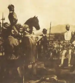 Luego de expresar su rechazo a la Confederación, Chile envió al mando del general Ventura Blanco Encalada una expedición militar que llegó a territorio arequipeño el 12 de octubre de 1837.[52] Antes de entrar en batalla hubo negociaciones que permitieron firma un tratado de paz en Paucarpata, distrito aledaño a la ciudad, el 17 de noviembre, entre el jefe militar chileno y el general Quiroz, de la Confederación. Chile no refrendó el tratado y envió una segunda expedición al mando del general Bulnes, al año siguiente, en apoyo de Ramón Castilla y otros militares caudillos peruanos contrarios a Santa Cruz.[53]