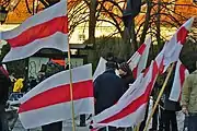 Dos años más tarde, en marzo de 1990, se llevaron a cabo las elecciones para obtener escaños en el Soviet Supremo de la RSS de Bielorrusia. Aunque el Frente Popular Bielorruso Pro-Independentista consiguió solo el 10% de los escaños, el pueblo estaba contento con la selección de los delegados.[19] Bielorrusia se declaró soberana el 27 de julio de 1990 mediante la Declaración de Soberanía de la República Socialista Soviética de Bielorrusia de la Unión Soviética (véase Desfile de Soberanías). Pero tras el intento de golpe de Estado en la Unión Soviética de agosto de 1991, el Soviet Supremo promulgó la independencia de Bielorrusia el 25 de agosto de 1991.[20] El 19 de septiembre de 1991, la RSS de Bielorrusia pasó a denominarse República de Belarús y fueron adoptados el histórico escudo Pahonia y la histórica bandera blanca-roja-blanca de Bielorrusia como símbolos de Estado.[21]
