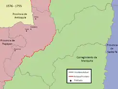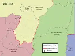 A finales del siglo XVI, un grupo de aventureros del oriente de Antioquia inició su migración hacia el Sur la cual se conocería como la Colonización Antioqueña, en tierras concedidas por la Corona Española a don Felipe de Villegas y Córdoba, las cuales comprendían el territorio situado entre el río Aures y la quebrada de Arma. Primero fue fundada Aguadas, en 1808, Juan de Dios Aranzazu, presidente de Colombia entre 1841-1842 y terrateniente del occidente colombiano. Allí los colonizadores tropezaron con el inconveniente de otra vasta concesión, la de Aranzazu, que incluía todas las tierras al oriente del río Cauca, entre las quebradas de Arma y Chinchiná. Se entabló una feroz lucha en la que hubo incendios y asesinatos entre los emigrantes y la compañía de González y Salazar, que era la sucesora de los títulos de Aranzazu. “Las tierras comprometidas incluían todo lo perteneciente a los municipios caldenses de Salamina, Neira, Aranzazu, Filadelfia y Manizales, con una zona de topografía excepcionalmente agreste de, aproximadamente, 60 km de longitud por 40 de ancho”. En 1825 es fundada Salamina; en 1842, Neira; en 1849, Manizales y finalmente en 1857, Chinchiná dando por terminada la colonización de esta zona.