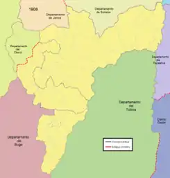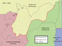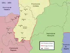 El nombre de Córboba tenía la finalidad de rendirle un homenaje al prócer antioqueño. Pero Uribe Uribe fue derrotado con la oposición de las representaciones de Cauca, Antioquia y Cundinamarca, varios ministros del Despacho y la inmensa mayoría conservadora de la Asamblea Nacional Constituyente. A comienzos del siglo XX, el gobierno del presidente Rafael Reyes, con la finalidad de debilitar la hegemonía de los antiguos Estados Soberanos, propuso la creación de varios departamentos, entre ellos el Departamento de Los Andes con capital en Manizales, nombre vetado por algunos miembros de la diputación del Cauca en la Asamblea Nacional Constituyente. Ellos condicionaron su votación afirmativa si se le colocaba como nombre el del sabio Francisco José de Caldas, propuesta que se impuso sobre la de los antioqueños que insistían en el nombre del prócer José María Córdova, fue así como, el 11 de abril de 1905, se crea el departamento de Caldas mediante la ley 17 del 11 de abril de 1905, siendo su primer Gobernador Alejandro Gutiérrez Arango.[1]