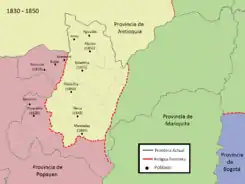 Cuando se preparaba la creación de la Confederación Granadina en 1858, el presidente Mariano Ospina Rodríguez, quien había sido gobernador del Estado Soberano de Antioquia, planteó, por primera vez, la idea de crear un nuevo departamento al sur del antioqueño. Sin embargo, la idea no tuvo acogida. Nuevamente lo propuso en 1888, con el nombre de Departamento de Sur con Manizales como su capital. Más tarde, en la Regeneración Conservadora, Rafael Uribe Uribe, apoyado ampliamente por Aquilino Villegas y Daniel Gutiérrez Arango, propuso la creación del Departamento de Córdova, con capital Manizales.