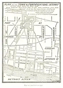 El ejército de los Estados Unidos recuperó Detroit en 1813 después de que los británicos la abandonaran y la usaran como base para invadir Canadá y poner fin de forma permanente a la amenaza de las incursiones indias en los asentamientos estadounidenses.[19] Después de que los británicos abandonaron Detroit, fuerzas estadounidenses lis alcanzaron y mataron a Tecumseh. Lewis Cass, como gobernador territorial, el 24 de octubre de 1815 les dio el control de los asuntos de gobierno a las elites locales, con la elección de una junta directiva de cinco personas y la promulgación de una carta para la ciudad.