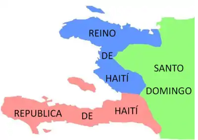 Dessalines, un esclavo nacido en una plantación del Norte, quedó como jefe del recién Estado haitiano. Decidió después de su primer año de mandato proclamándose a sí mismo Emperador del país con el nombre de Jacques I, dando lugar al Primer imperio de Haití. El emperador dio a su gobierno una fuerte impronta nacionalista pero al mismo tiempo buscó consolidar su poder personal creando un Estado autocrático, similar al que nacía en Francia durante esos años. Sus métodos autoritarios, derivados de la implementación del «fermage» (sistema de arrendamiento de terreno agrícola a cultivar), y una suma de luchas en toda la isla llevaron a una decadencia del imperio, lo que dio como resultado que el este de la isla fuese recuperado por los españoles, mientras que en el oeste se constituyese un complot entre los generales Christophe y Petion que dio como resultado su asesinato en 1806. Los instigadores del complot, debido a sus divergencias, libraban luchas por el liderazgo que desembocaron en la división del territorio desde 1806 y una guerra declarada como tal hasta 1810. Henri Christophe, un antiguo esclavo, estableció en el norte el Estado de Haití, que en el año 1811 se convirtió en el Reino de Haití, proclamándose como rey Enrique I; en el sur, el mulato Alexandre Pétion gobernó la República de Haití, que brindó amplio apoyo en armas y dinero a Simón Bolívar, a cambio de la abolición de la esclavitud en los territorios que fueran liberados. Pétion estaba convencido de que sólo la independencia de toda América garantizaría la de Haití, acosado por las potencias europeas y por Estados Unidos. Muerto Pétion en 1818, el general Jean Pierre Boyer es seleccionado presidente de la república y cuando Enrique I se suicida, Boyer reconquista el norte del país en 1820 consolidando la república.