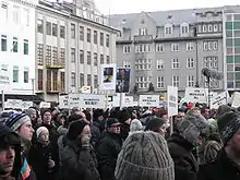En octubre de 2008, producto de la crisis financiera el sistema bancario islandés se derrumbó, obligando a Islandia a pedir grandes préstamos al FMI y a países amigos. Protestas generalizadas a fines de 2008 y 2009 dieron lugar a la dimisión del gobierno de Geir Haarde, que fue sustituido el 1 de febrero de 2009 por una coalición integrada por la Alianza Socialdemócrata y el Movimiento de Izquierda-Verde. La socialdemócrata Jóhanna Sigurðardóttir fue nombrada primer ministro, convirtiéndose en la primera mujer jefe de gobierno abiertamente lesbiana de la era moderna.[3][4]