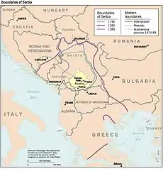 El control bizantino fue posteriormente reafirmado por el emperador Basilio II. Para entonces, Serbia no era un imperio unificado: varios reinos serbios pequeños se extendían en el norte y oeste de Kosovo, de los cuales Rascia (Raska, moderna Serbia central) y Doclea (Duklja, Montenegro) eran los más fuertes. En la década de 1180, el gobernante serbio Stefan Nemanja tomó el control de Doclea y partes de Kosovo. Su sucesor, Stefan Prvovenčani tomó el control del resto de Kosovo para 1216, creando un Estado e incorporando la mayor parte del área que corresponde actualmente a Serbia y Montenegro.