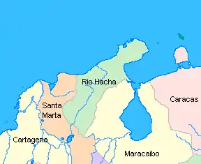 En 1739, el rey Felipe V de España creó la provincia del Río del Hacha, o simplemente Provincia del Hacha, también conocida como provincia de los Indios Guajiros, constituida por los actuales departamento La Guajira y el norte del departamento del Cesar en Colombia, y el noroeste del Estado Zulia y las islas Los Monjes en Venezuela.