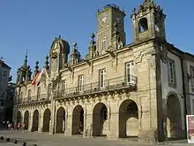 A las seis de la tarde, recibieron los oficiales de Telégrafos de esta capital, una circular del Comité Ejecutivo de Comunicaciones, dándoles cuenta de que en aquel momento ondeaba en el Ministerio de la Gobernación, la bandera republicana y que se hizo cargo del Poder, el Gobierno Provisional de la República... A las nueve en punto de la noche, se izaba en el Ayuntamiento primeramente, la bandera republicana y a continuación se cubría con la bandera gallega la corona real que figura en escudo de su frontispicio, entre frenéticos aplausos y vivas de la multitud. —El Progreso, 15 de abril de 1931 |