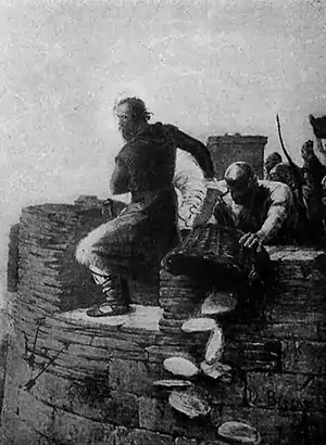 Según la leyenda,[47] Almanzor sitió Lugo en septiembre de 997. Pasaba el tempo y la ciudad no se rendía. Almanzor esperaba que el hambre doblegaría antes o después a los defensores. Sin embargo, los sitiados idearon la estrategia de tirar desde lo alto de la muralla unos bollos de pan y un cordero para hacer creer a Almanzor que aún les quedaba suficiente comida. Almanzor cayó en el engaño, renunció a la toma de la ciudad y ordenó levantar el asedio.[48]