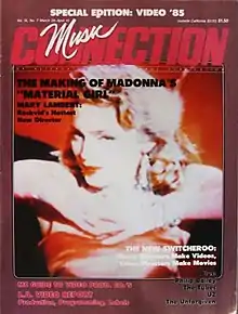 Madonna ha publicado tres discos como parte de las bandas sonoras en las películas que ha protagonizado y también ha colaborado con varias canciones para otras cintas, con las que encontró gran popularidad al acercarse a las primeras posiciones o llegando al tope en las listas de discos y sencillos de todo el mundo. Formó parte de la banda sonora de Vision Quest con «Gambler» y «Crazy for You» que representaron su primera colaboración musical para una película. Con el último tema pudo desbancar del número uno a «We Are the World» en la cartelera Billboard Hot 100.[78] Después publicó «Into the Groove» como parte de Desperately Seeking Susan. La directora Susan Seidelman sugirió a la cantante escribir e interpretar un tema como parte de la banda sonora del filme y para tener así un elemento más de promoción. Madonna lo escribió junto a Stephen Bray y la canción alcanzó tanto éxito que los ejecutivos de Sire Records y Warner Brothers decidieron añadirla al tracklist del álbum Like a Virgin.[18] Al año siguiente, en 1986, compuso una canción llamada «Live to Tell» para la cinta At Close Range, que protagonizó su entonces esposo Sean Penn.[21] El sencillo también llegó al número uno del Billboard Hot 100.[79]