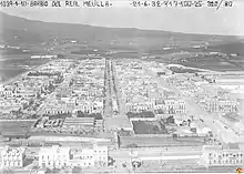 El 2 de mayo de 1904 la ciudad fue visitada por Alfonso XIII, que puso la primera piedra de las obras del puerto.[119] En 1902 se fundó el Colegio de Nuestra Señora del Buen Consejo,[120] de la Congregación de Hermanas Franciscanas de Nuestra Señora del Buen Consejo. En 1920 pasó a ser de la Congregación de Hermanas Franciscanas de los Sagrados Corazones.[121] A comienzos del siglo XX se fundaron la Academia de Árabe y la Escuela de Artes y Oficios.[120]En 1904 un grupo de mujeres fundó el Melilla Sporting Club, de tenis y patinaje. Se reunían en el Casino Militar y practicaban estos deportes en el parque.[122]El 17 de diciembre de 1906 se colocó la primera piedra del barrio de la Reina Victoria, que tardó en construirse diez años.[110] Se llamó así por Victoria Eugenia de Battenberg, esposa de Alfonso XIII.