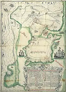 El gobernador Alonso de Guevara construyó el Fuerte de San Fernando, donde posteriormente estuvo el Cuartel de la Policía Armada.[91]En 1732 pasó a ser gobernador Antonio de Villalba Angulo Ponce de León. En 1734 conquistó el Cerro del Cubo y la fortaleza que ahí se encontraba. Posteriormente, construyó en este entorno el Fuerte de Victoria Grande, finalizado en 1736, el Fuerte del Rosario, la Torre de Santa Lucía y el Fuerte de Victoria Chica.[92]