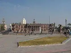 quince leguas hacia oriente y otras quince hacia poniente y de norte a sur lo mismo en cuadro. De ejido, o sea el campo común para todos los vecinos, le señaló una legua en redondo, conforme a la ordenanza número 43, y atento a que el presente no hay gente suficiente de españoles (...) hasta adelante Dios mediante haya más comodidad, sólo nombró a "Alonso de Barreda y a Pedro de Íñigo, por alcaldes ordinarios, y a Juan Pérez de los Ríos y Diego Díaz de Berlanga y Diego Maldonado, por regidores y a Diego de Montemayor (su hijo) por procurador general de este reyno y a Diego Díaz de Berlanga por escribano del cabildo.[10]