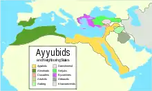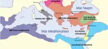 Una década más tarde, Bizancio perdió el control de la región durante la conquista musulmana del Levante, durante la cual las fuerzas del imperio fueron derrotadas decisivamente en la batalla de Yarmouk en 636. Jerusalén capituló en 638 y Cesarea entre 640 y 642.[116] Los subsiguientes Califatos Rashidun y Omeyas vieron un siglo de rápida expansión del poder árabe mucho más allá de la península arábiga en la forma de un vasto Imperio Árabe Musulmán. [cita requerida]
