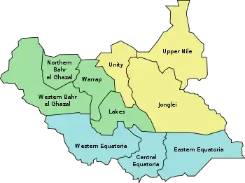 A medianoche el 9 de julio de 2011, Sudán del Sur se convirtió en un país independiente con el nombre de República de Sudán del Sur.[12][13] El 14 de julio Sudán del Sur se convirtió en el país 193 que pasaba a formar parte de las Naciones Unidas.[14][15]