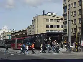 TransMilenio es un sistema de transporte de tipo BRT, que hace parte del sistema de transporte masivo de Bogotá y Soacha cuya entidad gestora es la Empresa de Transporte del Tercer Milenio S. A.. Su construcción se inició en noviembre de 1999 [1] y fue inaugurado el 4 de diciembre de 2000. Entró en operación el 18 del mismo mes con las troncales (líneas) de la avenida Caracas (hasta la avenida de los Comuneros) y la calle 80.[2][3] Desde entonces se han abierto nuevas troncales. Forma parte del SITP, junto con los servicios urbano, complementario y especial, que circulan por los barrios y vías principales de la ciudad.