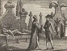 A finales del siglo XVII el rey Felipe IV patrocinó la representación de operetas en el palacio de la Zarzuela de Madrid, dando origen a un nuevo género: la zarzuela.[65] El primer zarzuelista fue Juan Hidalgo, autor en 1658 de El laurel de Apolo, con texto de Calderón, a la que siguieron Ni amor se libra de amor (1662, Calderón de la Barca), La estatua de Prometeo (1670, Calderón de la Barca), Los celos hacen estrellas (1672, Juan Vélez de Guevara), Alfeo y Aretusa (1672, Juan Bautista Diamante), Los juegos olímpicos (1673, Agustín de Salazar y Torres), Apolo y Leucotea (1684, Pedro Scotti de Agoiz) y Endimión y Diana (1684, Melchor Fernández de León). Posteriormente destacó la obra de Sebastián Durón, con libretos de José de Cañizares (Salir el amor del mundo, 1696), y de Antonio Literes (Júpiter y Dánae, 1708).[84] Tras la muerte de Felipe IV, la zarzuela se trasladó al Teatro del Buen Retiro de Madrid.[85]