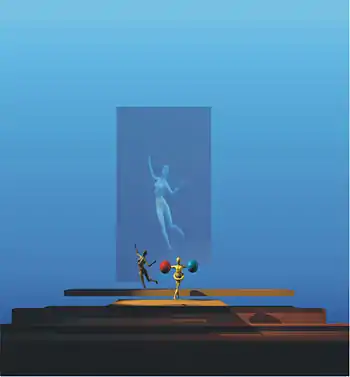 La ópera barroca destacó por la escenografía complicada, ornamentada, recargada, con cambios repentinos y con complicados efectos lumínicos y sensoriales. Se empleaban numerosos decorados, hasta quince o veinte cambios de escenario por representación.[40] Comenzó el gusto por las voces solistas, principalmente las agudas (tenor, soprano), que conllevó de forma paralela el fenómeno de los castrati. Estos últimos eran niños que destacaban en el canto y que eran castrados antes de entrar en la pubertad para que su voz no cambiase; así, de adultos mantenían una voz aguda, cercana a la femenina, pero más potente, flexible y penetrante.[24][nota 4] También se introdujo el canto en vibrato, consistente en fluctuaciones de timbre, tono e intensidad, lo que proporcionaba mayor emotividad a la interpretación.[42]