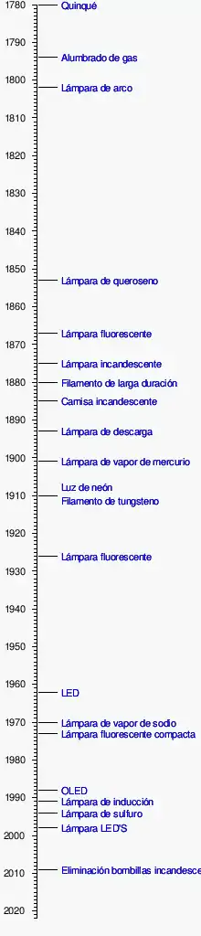 A este artículo o sección le falta la siguiente información importante: Esta sección solo describe el desarrollo de la lámpara incandescente . Faltan LED , lámpara halógena , tubo fluorescente, etc.-- Torsch 15:17, 21 de agosto de 2011 (CEST) Ayuda a Wikipedia investigando y agregando .