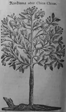 Misioneros españoles encontraron que la fiebre fue tratada por los amerindios, cerca de Loxa (Perú), con polvo de la corteza de árboles peruanos (más tarde establecido que podía ser de cualquier tipo de árbol del género Cinchona).[44] Así mismo, fue utilizado por los indios quechuas de Perú para reducir los temblores causados por los escalofríos.[45] Agostino Salumbrino (1561-1642), hermano jesuita, que vivió en Lima y fue boticario de profesión, observó a los quechua que usaban la corteza del árbol cinhona para tratar la enfermedad. Aunque se buscaba tratar el frío y temblor causado por la enfermedad, fue también efectivo para la malaria en general. El uso de la corteza del "árbol de la fiebre" fue introducido a la medicina europea por los misioneros jesuitas.[46] El jesuita Bernabé de Cobo (1582-1657), quien exploró México y Perú, es acreditado por llevar la corteza del árbol cinchona a Europa. Trajo la corteza desde Lima hasta España, y después a Roma y otras partes de Italia, en 1632. Francisco Torti escribió, en 1712, que solo "la fiebre intermitente" era susceptible a la corteza del árbol de la fiebre.[47] Este trabajo finalmente estableció la naturaleza de la corteza del cinchona y la llevó al uso general en la medicina.[48]