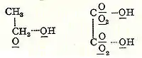 para el alcohol y el ácido oxálico usando símbolos elementales para los átomos y líneas para los enlaces (1858)]]