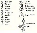 De forma similar a éstas ideas, en 1803 John Dalton usó el peso atómico del hidrógeno, el elemento más ligero, como unidad y determinó, por ejemplo, que el radio para el Anhidro nitroso es de 2 a 3, lo cual da la fórmula N2O3. Curiosamente, Dalton imaginó incorrectamente que los átomos se "enganchaban" entre sí para formar moléculas. Más tarde, en 1808m Dalton publicó su famoso diagrama de "átomos" combinados: