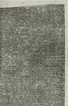 - Código de Hammurabi: es el más representativo de toda la Historia Antigua y es el más importante corpus legal de casi toda la antigüedad. Se conserva en una estela de piedra de 2’5 metros de alto y réplicas se conservan en ciudades lejanas a Babilonia. Tiene 282 parágrafos y se supone que los redactores del código pertenecen a una cancillería real y se inspiran en códigos anteriores. El periodo de gestación de estos parágrafos había sido de muchos años. Se puede fechar en el 1760 a. C. El Código de Hammurabi que se conserva data del año 37 del reinado de Hammurabi y aquí también en el prólogo, Hammurabi se establece como el que "hace la justicia en el país".