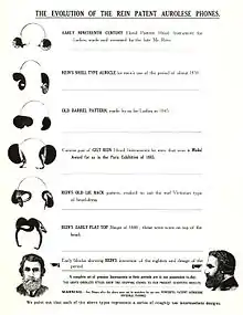Hacia fines del siglo XIX, los audífonos ocultos se hicieron cada vez más populares. Rein fue pionera en muchos diseños notables, incluyendo sus "vinchas acústicas", donde el audífono se ocultaba artísticamente dentro del cabello o un arnés. Los "teléfonos Aurolese" de Reins eran vinchas para la cabeza, hechas en una variedad de formas, que incorporaban colectores de sonido cerca del oído que amplificaban el sonido. Los auxiliares audítivos también se escondieron en sofás, ropa y accesorios. Esta tendencia hacia la invisibilidad cada vez mayor del auxiliar auditivo solía estar más orientado a ocultar la discapacidad del individuo frente a la sociedad que en ayudar al individuo a lidiar con su problema.[3]