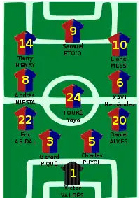 - Plantilla: Víctor Valdés, Pinto, Daniel Alves, Piqué, Cáceres, Márquez, Milito, Puyol, Sylvinho, Abidal, Hleb, Sergio Busquets, Keita, Yayá Touré, Iniesta, Xavi, Pedrito, Messi, Gudjohnsen, Bojan, Henry y Eto'o.