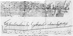 Además, se planteaba la posibilidad de empalmar a futuro con el Ferrocarril de Circunvalación en las cercanías de la estación San Diego, el ferrocarril Longitudinal y el ferrocarril a Valparaíso, ubicados en la Estación Mapocho. También, se planteaba la posibilidad de una tercera línea, entre la Estación Mapocho y la calle Robles por el eje de la avenida San Pablo a lo largo de 4 km. El proyecto, sin embargo, no tuvo gran impacto: si bien el decreto 905 del 25 de mayo de 1944 aprobó los planos para línea norte-sur y en octubre de 1946 se inició la petición de propuestas públicas para su construcción, este proceso no se completó y el proyecto quedó archivado.[18][19][20]