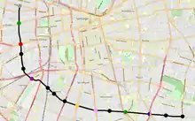 - Tramo 1 (2.ª prioridad): línea a 11 m bajo la Alameda Bernardo O'Higgins entre las calles Jotabeche y la calle Estado, donde toma una diagonal llegando al cruce entre las calles Santa Isabel con Lira, continuando por Santa Isabel hasta la avenida Bustamante, totalizando 5,35 km de recorrido.