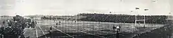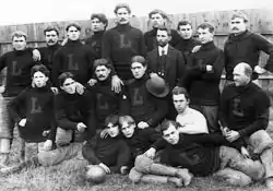 El fútbol interuniversitario organizado se jugó por primera vez en el estado de Virginia y el sur el 2 de noviembre de 1873 en Lexington entre Washington y Lee y VMI . Washington y Lee ganaron 4-2.[36] Algunos estudiantes diligentes de las dos escuelas organizaron un partido el 23 de octubre de 1869, pero fue suspendido por lluvia.[37]