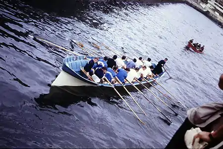 Como curiosidad, hay que resaltar que fue Donostia la primera de todo el Cantábrico que pintó la trainera de un color diferente al negro habitual en todas las embarcaciones hasta esa fecha: en 1969, el patrón Garín pintó su trainera con el color donostiarra en el remo, el blanco[15] (a principios del siglo XX hubo años sueltos en que alguna trainera que se pintó, pero como hecho puntual y sin vocación de continuidad, y sin ánimo de resaltar el vínculo color-pueblo).