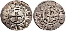 La disminución del numerario de oro debido a una balanza comercial deficitaria con el mundo musulmán (sea directamente o vía Bizancio)[17] y a la disminución de los intercambios con el mundo mediterráneo debido a la pérdida del control del Mediterráneo por el Imperio bizantino volvió necesaria la adopción de una moneda acuñada con un mineral más abundante en Europa que el oro. Por otra parte, era necesaria una moneda de valor más feble adaptada a las transacciones.[18] El desarrollo del comercio en torno al Mar del Norte acarreó la acuñación de monedas de plata por los frisones y los anglosajones desde el 680.[18] Al inicio del reinado de los Pipínidas, las diferentes partes del imperio utilizaban monedas diferentes, lo que frenaba los intercambios. En 755, Pipino el Breve tomó el control de Dorestad y de los talleres de acuñación de monedas frisones, con lo cual afirmó su monopolio monetario al ordenar la amonedación de un denario de plata normalizado, adornado con su monograma.[19]