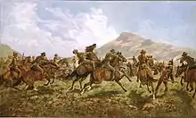 La invasión británica en las áreas de Sudáfrica ya resueltos por los bóeres afrikáneres y la competencia por recursos y tierras que se desarrolló entre ellos abocó, como consecuencia, en Segunda Guerra de los Bóer en el año 1899. Adelantándose al despliegue de las fuerzas británicas, las Repúblicas afrikáneres del Estado Libre de Orange y la República de Transvaal bajo la presidencia de Paul Kruger declararon la guerra el 11 de octubre de 1899, atacando con profundidad en los territorios británicos en las Colonias de Natal y la del Cabo.[35] Tras el estallido de la guerra, los planes para el envío de una fuerza combinada de Australia se determinó posteriormente, por un lado la Oficina de Guerra Británica y cada uno de los seis gobiernos coloniales enviaron contingentes separados para servir con formaciones británicas; dos escuadrones cada uno de 125 hombres de Nueva Gales del Sur y Victoria, y uno las otras colonias.[36] Las primeras tropas llegaron al lugar tres semanas más tarde, con los Lanceros de Nueva Gales del Sur, que habían estado entrenando en Inglaterra antes de la guerra, se apresuraron a ser desviados a Sudáfrica. El 22 de noviembre los lanceros fueron atacados por primera vez cerca de Belmont, y posteriormente obligaron a los atacantes a retirarse después de infligirles bajas significativas.[37]