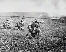 El 21 de marzo de 1918 el Ejército alemán lanzó su ofensiva de primavera en un último esfuerzo para ganar la guerra, enviando sesenta y tres divisiones a lo largo de más de 70 millas (112,65 km) por el frente.[88] Mientras los aliados retrocedían, las divisiones 3.ª y 4.ª fueron trasladadas al sur de Amiens en el Somme.[89] La ofensiva se prolongó durante los próximos cinco meses y las cinco Divisiones de la FIA en Francia estaban involucradas en el intento de detener la marea. A finales de mayo los alemanes habían avanzado hasta 50 millas (80,47 km) de París.[90] Durante este tiempo, los australianos lucharon en Dernacourt, Morlancourt, Villers-Bretonneux, Hangard Wood, Hazebrouck y Hamel.[91]