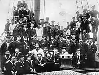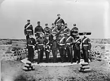 Con la excepción de Australia Occidental, en las colonias también funcionaron sus armadas. En el año 1856, Victoria recibió su propio buque de guerra, el HMCSS Victoria, y su despliegue en Nueva Zelanda en el año 1860 durante la Primera Guerra de Taranaki, marcó la primera ocasión en que un buque de guerra australiano había sido desplegado en el extranjero.[29] Las marinas de guerra coloniales se ampliaron en gran medida a mediados de la década de 1880 y consististieron en una serie de barcos de guerra y torpederos para la defensa de puertos y ríos, así como brigadas navales para equipar los buques y fortalezas. Victoria se convirtió en la más poderosa de todas las marinas coloniales, con el acorazado HMVS Cerberus en servicio desde 1870, así como el buque de guerra de vapor y vela HMS Nelson en calidad de préstamo de la Royal Navy, tres cañoneras y cinco pequeños torpederos. Nueva Gales del Sur formó una brigada de la Marina en el año 1863 y por el cambio de siglo tuvo dos pequeños torpederos y una corbeta. La Fuerza de Defensa Marítima de Queensland fue fundada en el año 1885, mientras que el sur de Australia operaba una sola nave, el, HMCS Protector. Tasmania tenía también un pequeño cuerpo de torpederos, mientras que solo las defensas navales de Australia Occidental incluía la Artillería Naval de Fremantle. Personal naval de Nueva Gales del Sur y Victoria participaron en el Levantamiento de los bóxers en China en el año 1900, mientras que el HMCS Protector fue enviado a Australia del Sur, pero no entró en acción alguna.[30] Las colonias separadas mantuvieron el control sobre sus fuerzas militares y navales hasta su Federación en el año 1901, cuando se fusionaron y se colocaron bajo el control de la nueva Australia.[31]