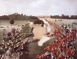 Una de las acciones más importantes por las fuerzas británicas durante este periodo fue el sofocamiento de las Rebeliones de 1837. La Rebelión del Alto Canadá fue derrotada rápida y decisivamente por el ejército británico. La Rebelión del Bajo Canadá fue una mayor amenaza para los británicos, y los rebeldes resultaron victoriosos en la Batalla de Saint-Denis el 23 de noviembre.[27] Dos días después, los rebeldes fueron derrotados en la Batalla de Saint-Charles, y el 14 de diciembre, finalmente fueron sofocados en la Batalla de Saint-Eustache.[27]