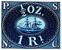 Estos primeros sellos postales, impresos por la PSNC para su uso particular, empezaron a circular el 1 de diciembre de 1857, con dos valores: Un Real (azul) y 2 Reales (rojo), los cuales se emplearon hasta el 28 de febrero de 1858[1] para hacer una primera prueba de la utilización de sellos postales en el correo peruano, con patrocinio del gobierno.