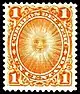 A partir de 1874, se emitió una serie de sellos postales con la imagen del sol -en alusión al dios de los incas- y el Escudo del Perú, que culminaría en 1884 y sería materia de reimpresiones, resellos y habilitaciones.