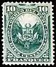 Vista la eficacia del nuevo sistema, los sellos de la PSNC dejaron de circular y el 10 de marzo de 1858, se efectuó la primera emisión propia del Correo Peruano: una serie de cuatro estampillas sin dentar, con el escudo nacional y en valores de «Un Dinero» (azul), «Una Peseta» (rosa) y «Medio Peso» (en dos colores: rosa y anaranjado)[1] impresos en Lima y creándose el primer "error filatélico" en las emisiones peruanas al imprimirse unos sellos de "medio peso" en amarillo.