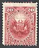 En 1866 y 1867, Correos del Perú emitió las primeras estampillas dentadas, impresas en Estados Unidos, con valor de 5 centavos (verde), 10 centavos (bermellón) y 20 centavos (marrón). Todas presentaban a dos llamas, símbolo de la región andina. Al año siguiente se emitió una estampilla en relieve con valor de «Un Dinero» en color verde claro.