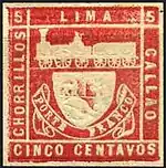 En 1871, conmemorando el vigésimo aniversario de la construcción del primer ferrocarril de América del Sur que unía Lima y Chorrillos con el puerto del Callao, se emitió un sello en relieve con la imagen de una locomotora sobre el escudo nacional, en color escarlata y con valor nominal de 5 centavos. En algunos casos debidos a errores de impresión, el texto «CALLAO» aparece incompleto mostrando únicamente «ALLAO» o «CALLA».