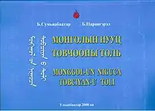 La Historia secreta de los mongoles (mongol tradicional: Mongγol-un niγuča tobčiyan, mongol khalkha: Монголын нууц товчоо, Mongolyn nuuts tovchoo[nota 1]) es la primera obra literaria en lengua mongola. Se trata de una obra poética de carácter épico que narra la subida al poder del célebre líder mongol Gengis Kan.